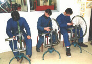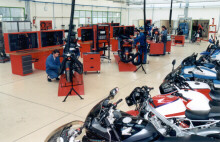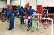dans le fond de cet atelier se trouvent une salle de métrologie équipée d'une climatisation pour respecter les 20°, une salle d'essai moto équipée d'un banc de puissance, une salle de soudure et une salle de lavage équipée d'un carcher. |
